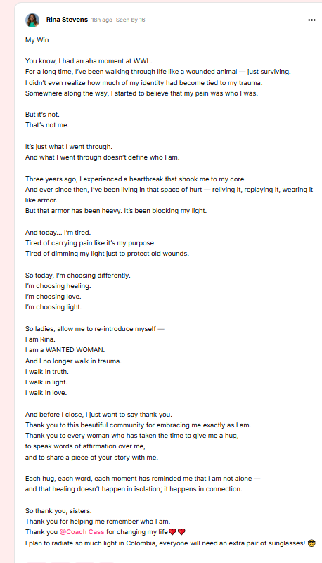 • “My first WANTED Woman Live taught me I could choose peace over chaos. That choice shifted everything in my life and business — that’s why I came back again.” — Dawn